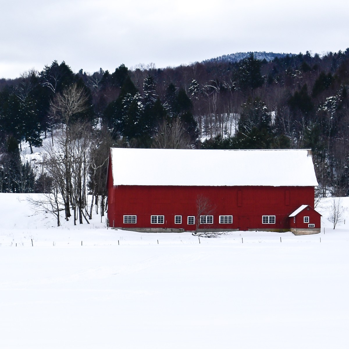 This red barn is located on rt 100 in the Stowe, Vermont area and was taken in March 2018.